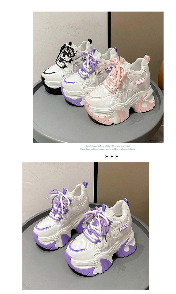 Heel Height:Platform Season:Spring,Autumn Fashion Element:Sewing Pattern Type:Mixed Colors Material:Mesh,PU Color:Black,Lavender,Light-pink Size:35-40 Closure Type:Lace-up Department Name:Adult ..