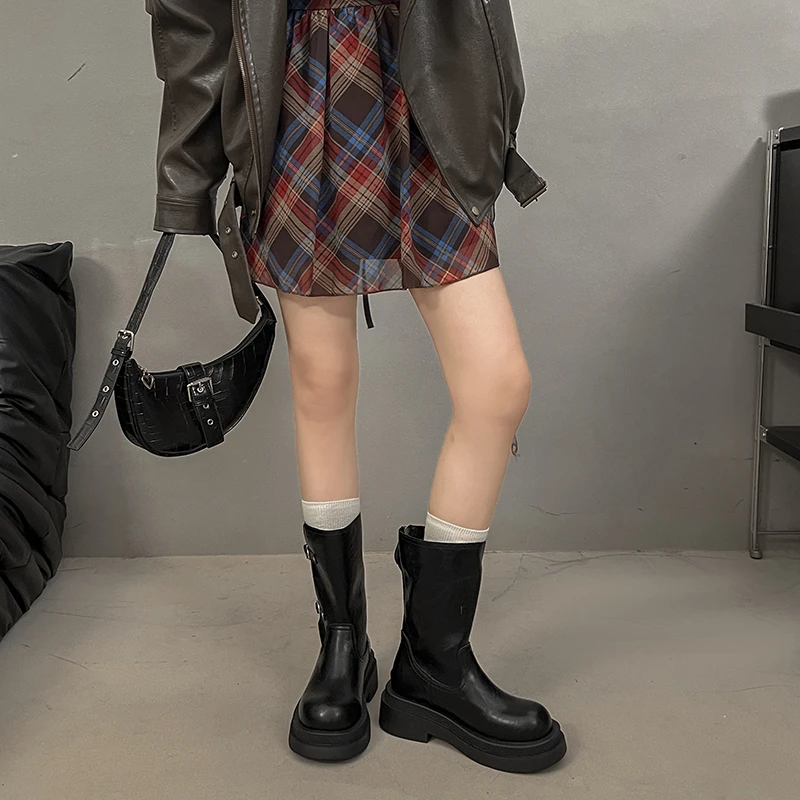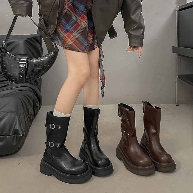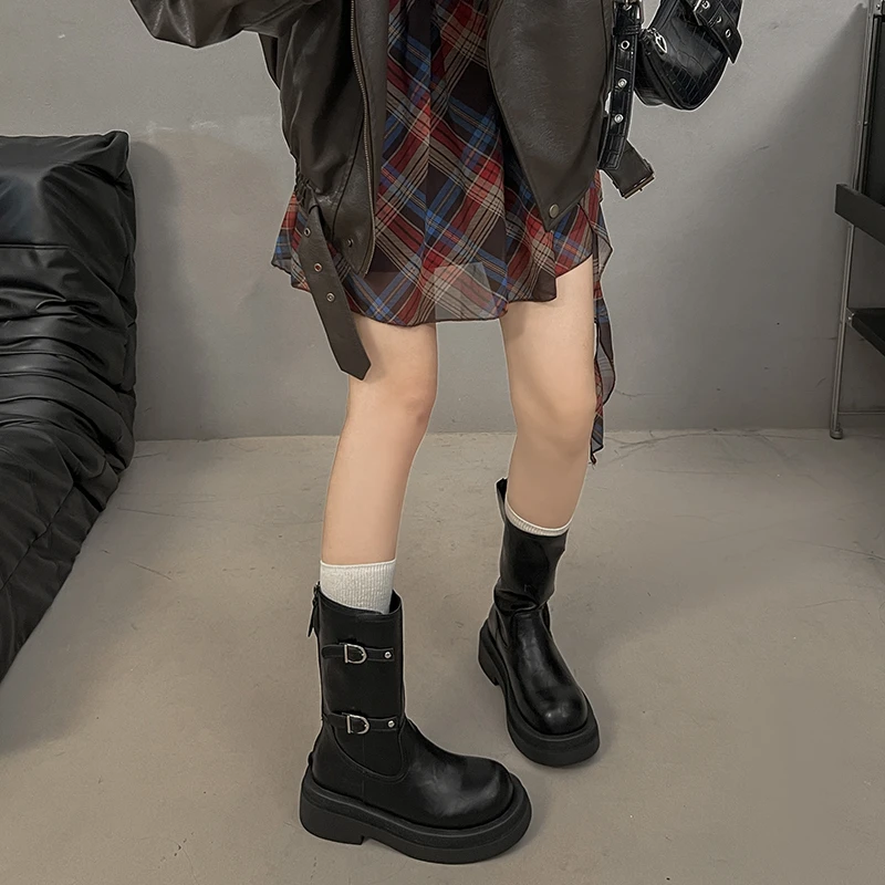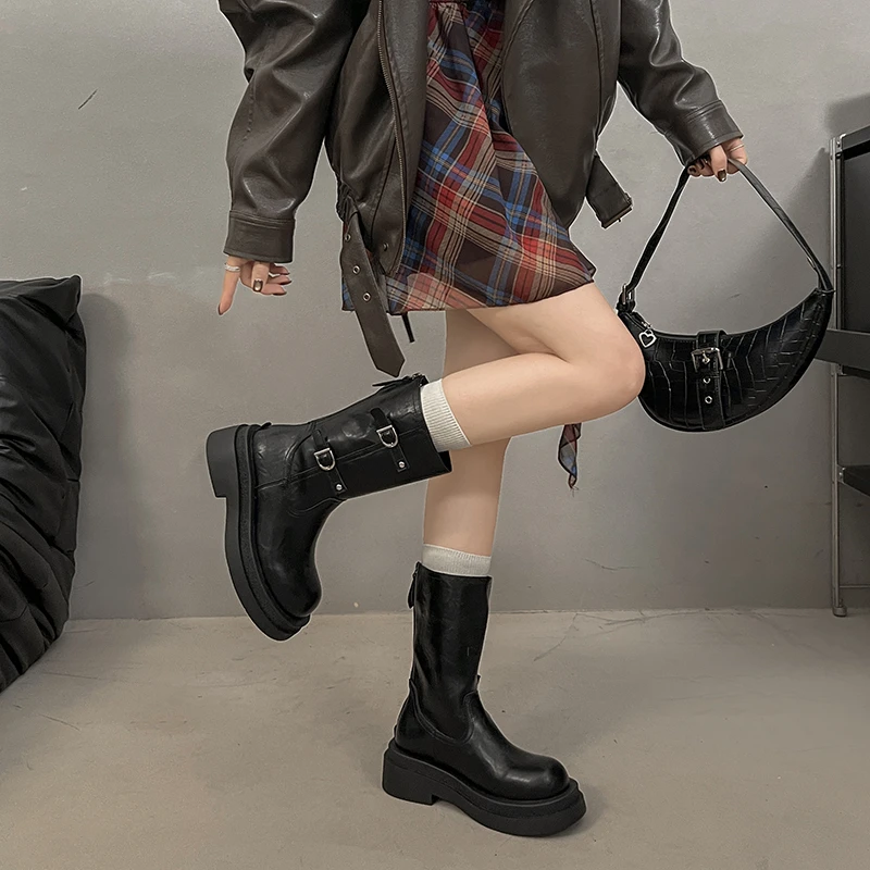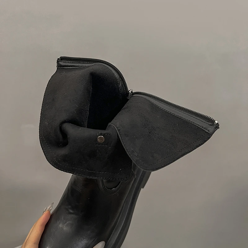 Platform Thick Heel Women Knight Ankle Boots Concise Height Increase Shoes Female Punk Vintage Short Booties