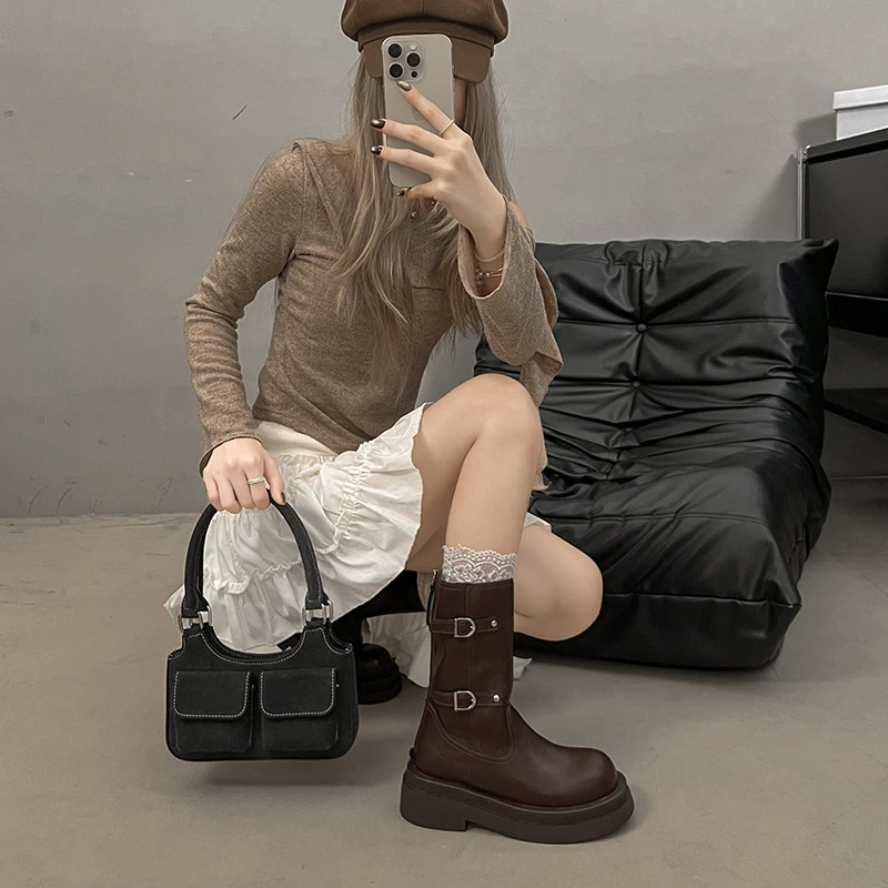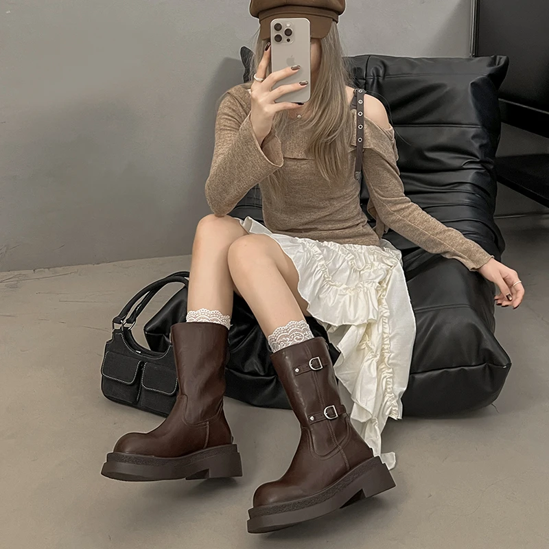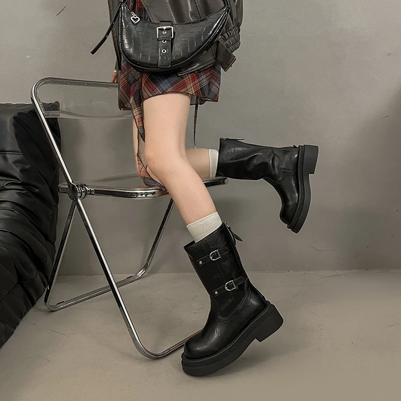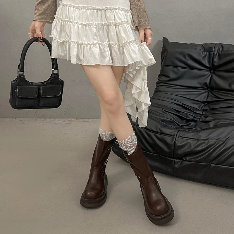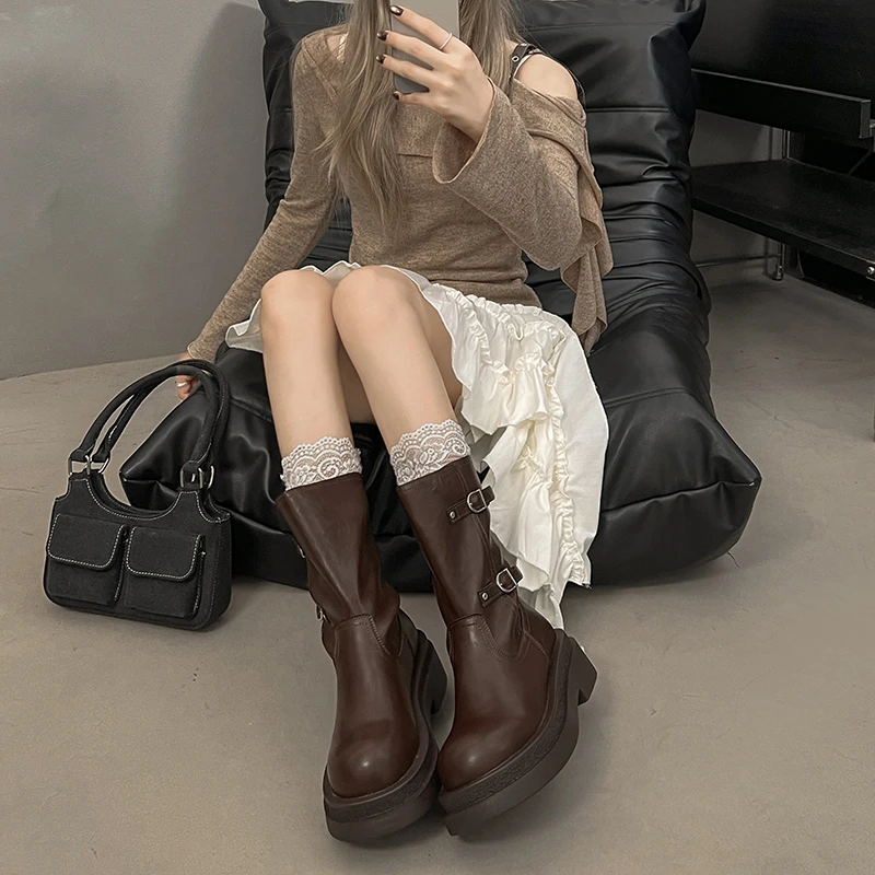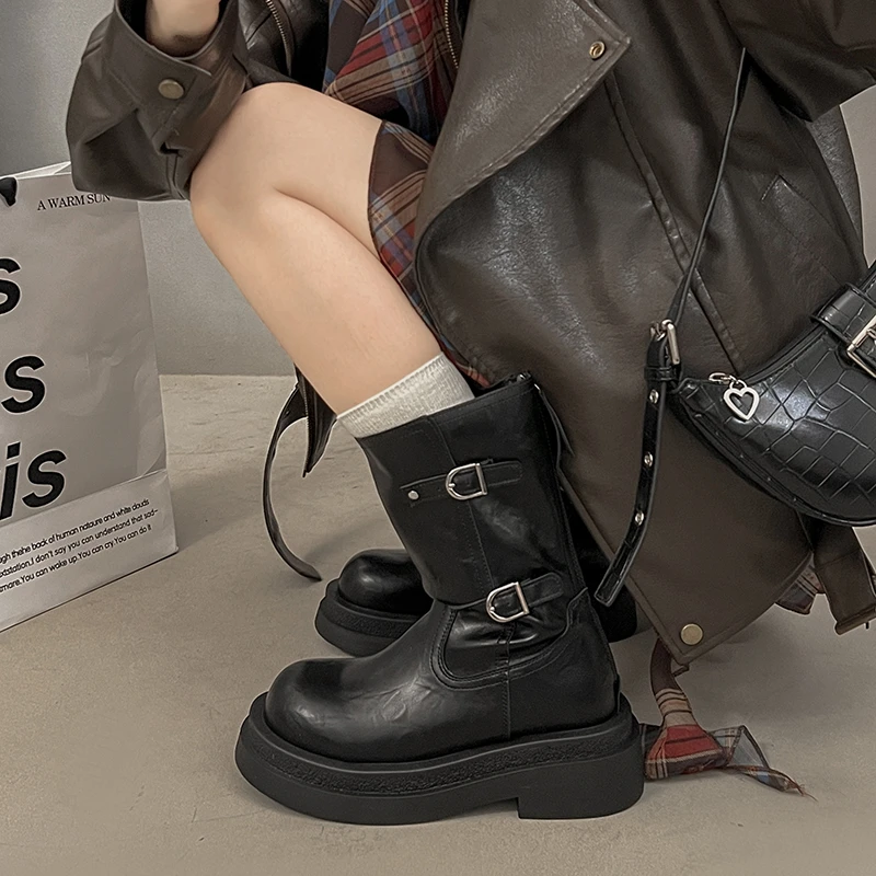 Platform Thick Heel Women Knight Ankle Boots Concise Height Increase Shoes Female Punk Vintage Short Booties