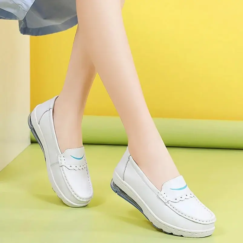 Women's Flat Genuine Leather Shoes Soft Sole Low-Cut Breathable Nurse Shoes