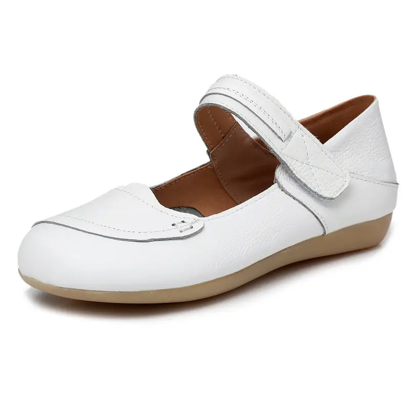 Gender: Female High-Attention Chemical Substances: None Style: Minimalist Toe Shape: Round Toe Pattern Type: Solid Color Shoe Type: Loafers Material: Genuine Leather Target Audience: Adults Closure Method: Velcro Product Type: Flat Shoes Color:White Size:36-39..