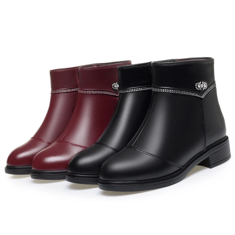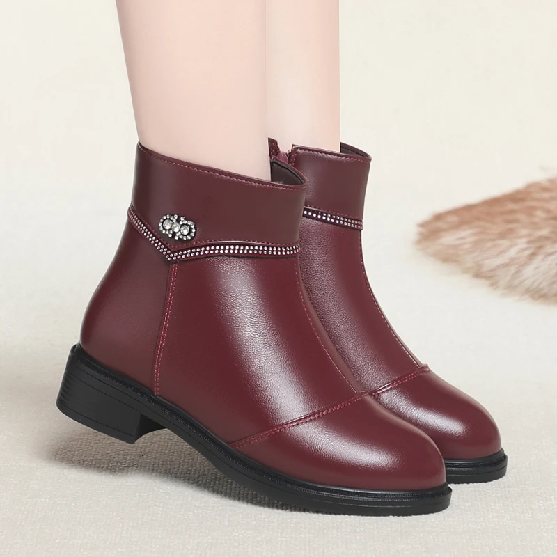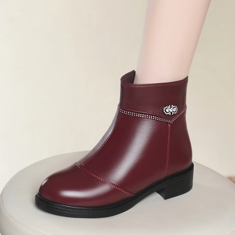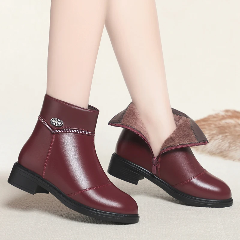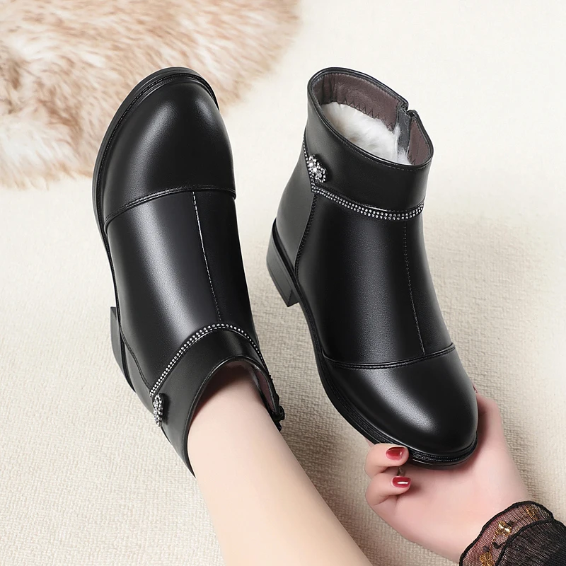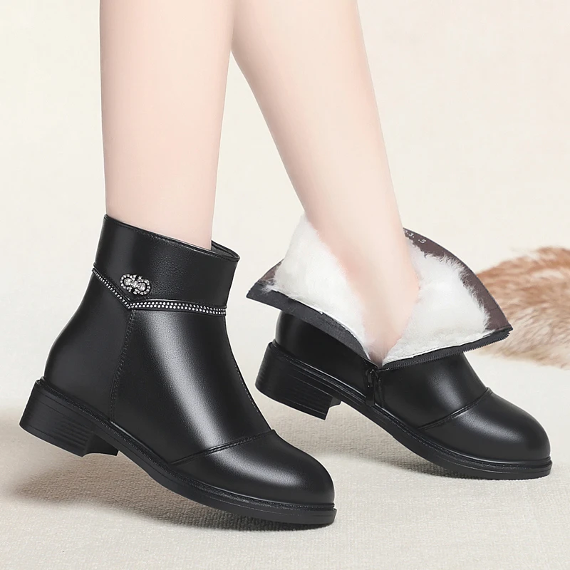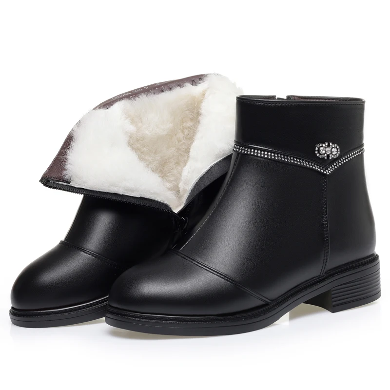 Women Ankle Boots Genuine Leather Winter Wool Warm Women Snow Boots Round Toe Retro Winter
