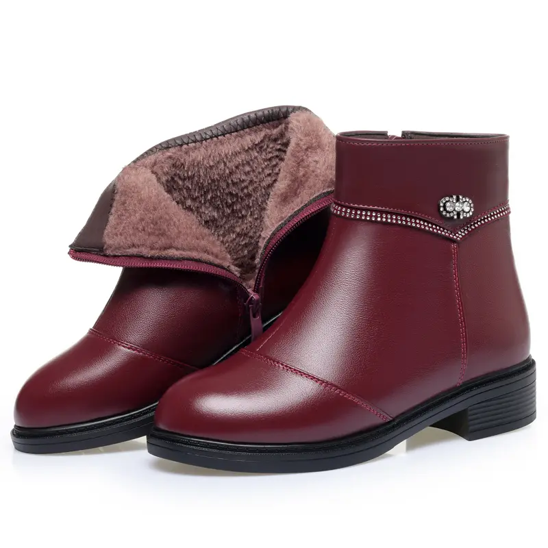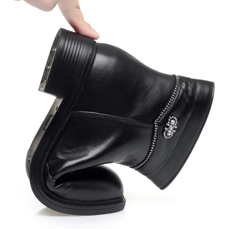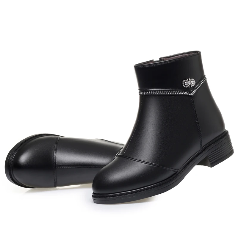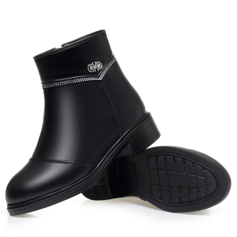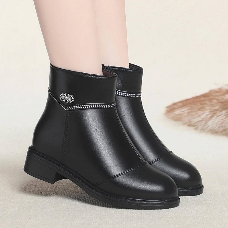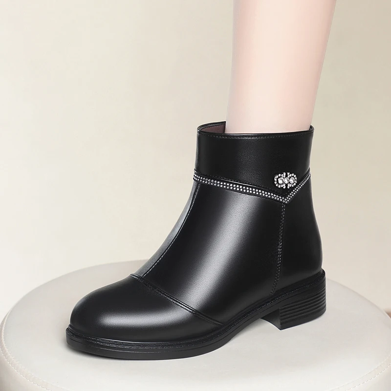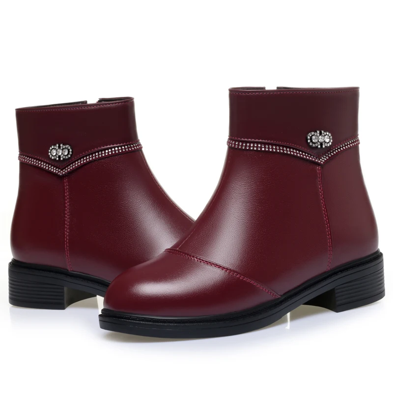Women Ankle Boots Genuine Leather Winter Wool Warm Women Snow Boots Round Toe Retro Winter