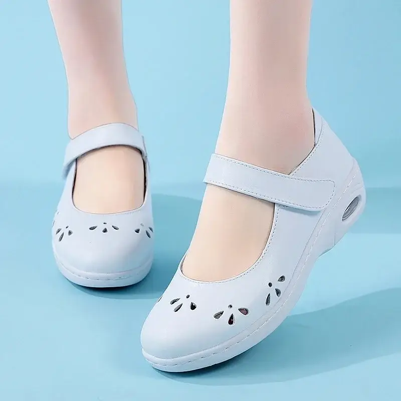 Gender: Female High-Attention Chemical Substances: None Style: Minimalist Fashion Elements: Hollow-Out Toe Shape: Round Toe Pattern Type: Solid Color Material: Split Leather Target Audience: Adults Closure Method: Velcro Product Type: Flat Shoes Color:White Size:36-39..